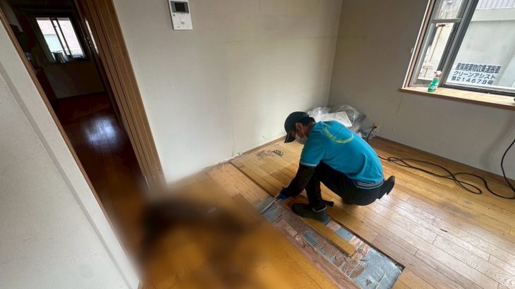 石川県金沢市での特殊清掃の現場です。 旦那様が孤独死された奥様からの依頼で死後2週間が経過していました。 フローリングを含む体液のついた部分を除去します。 フローリング材の下地には付着していなかったで […]