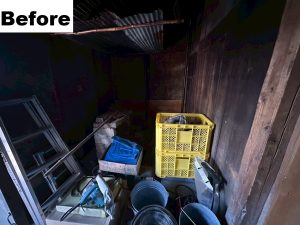 住んでおられた方が職人さんだったようで、家の外と中に単管パイプを使った棚が多くありました。